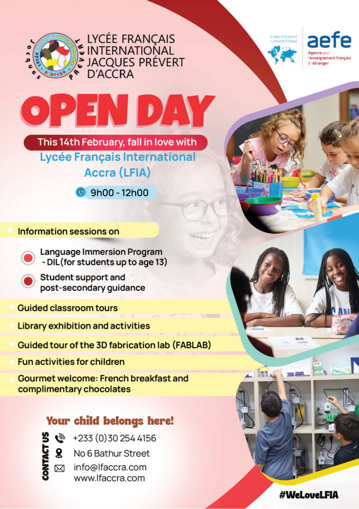 Enrolling your child at the French International High School of Accra is a choice for excellence and fulfillment. Excellence in our French exam results (100% success rate in the Baccalaureate and 97% in the DNB in the 2024 session), in the preparation for French, English (IGCSE) and Spanish (DELE) language certifications, in our pursuit of studies in the best French and international schools and universities.